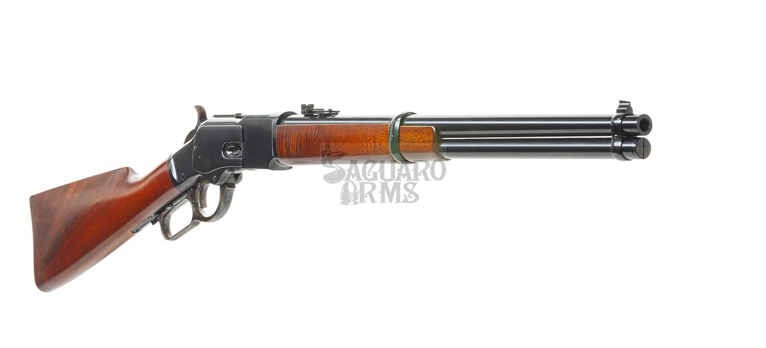 Winchester 1873, wersja krótkiego karabinka, długość lufy 19" .Lufa okrągła. . Stalowa,oksydowana rama, doskonałej jakości osada z drewna orzechowego. Kaliber 357Mag