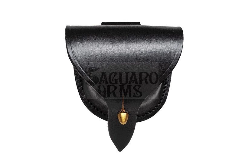 Kapiszonownik-sakwa skórzana na kapiszony,wykonana zgodnie z oryginałem, wyściełana wełną jagnięcą , zapinana na mosiężny knopik.
