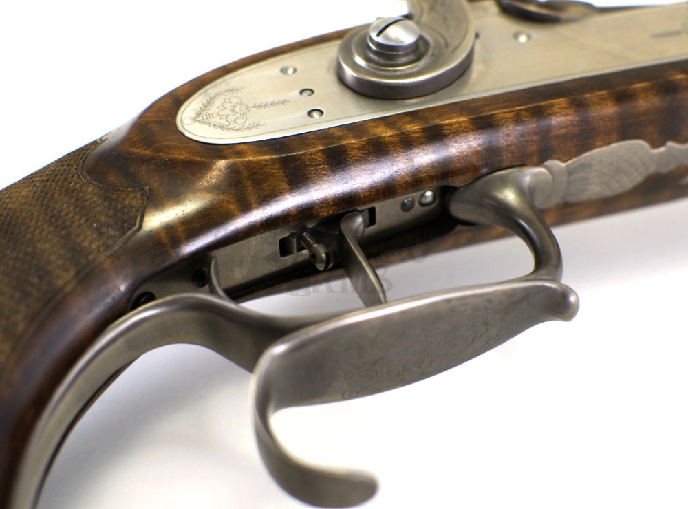 Pistolet czarnoprochowy Le Page Target Maple. Replika z zapłonem skałkowym w kalibrze .44 . Kod S.307 . Piękne ekskluzywne drewno ( klon pasiasty)