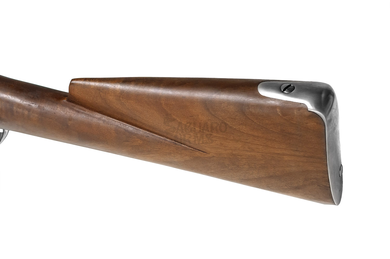 Łoże wykonane z jednego kawałka olejowanego drewna orzechowego. Okucia stalowe , stalowy pobojczyk.