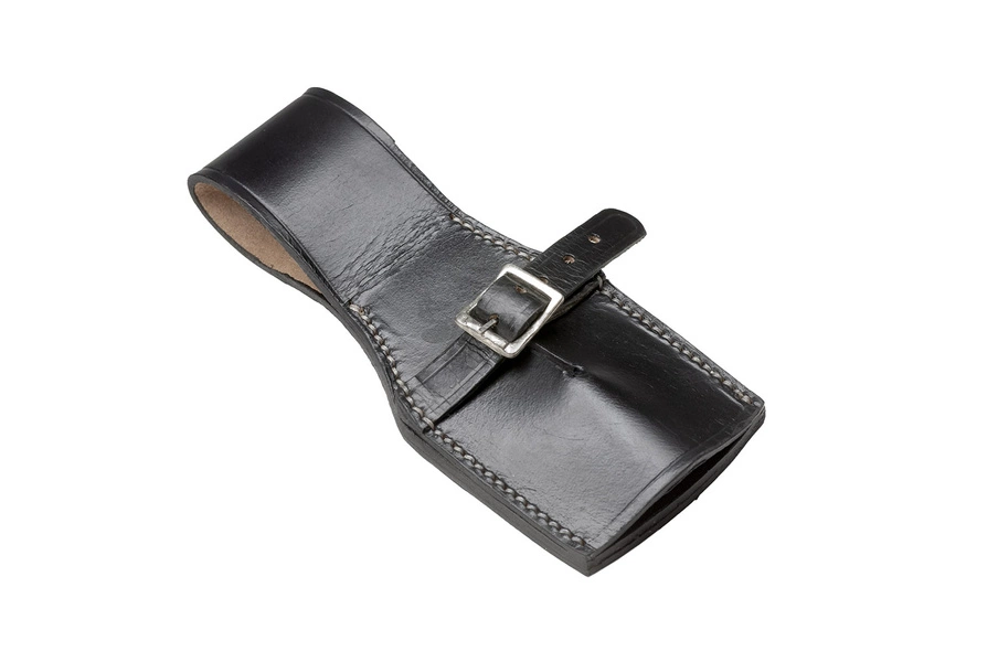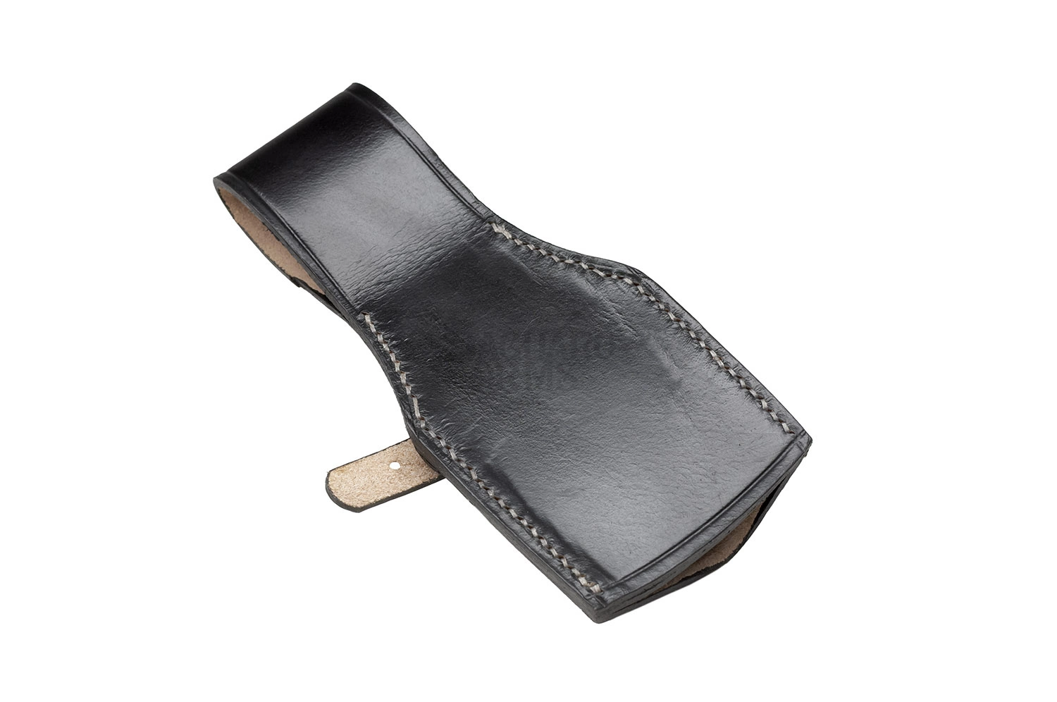 Żabka do bagnetu Enfield wykonana z grubej wołowej skóry, barwionej jednostronnie na kolor czarny, z paskiem do zabezpieczania pochwy bagnetu