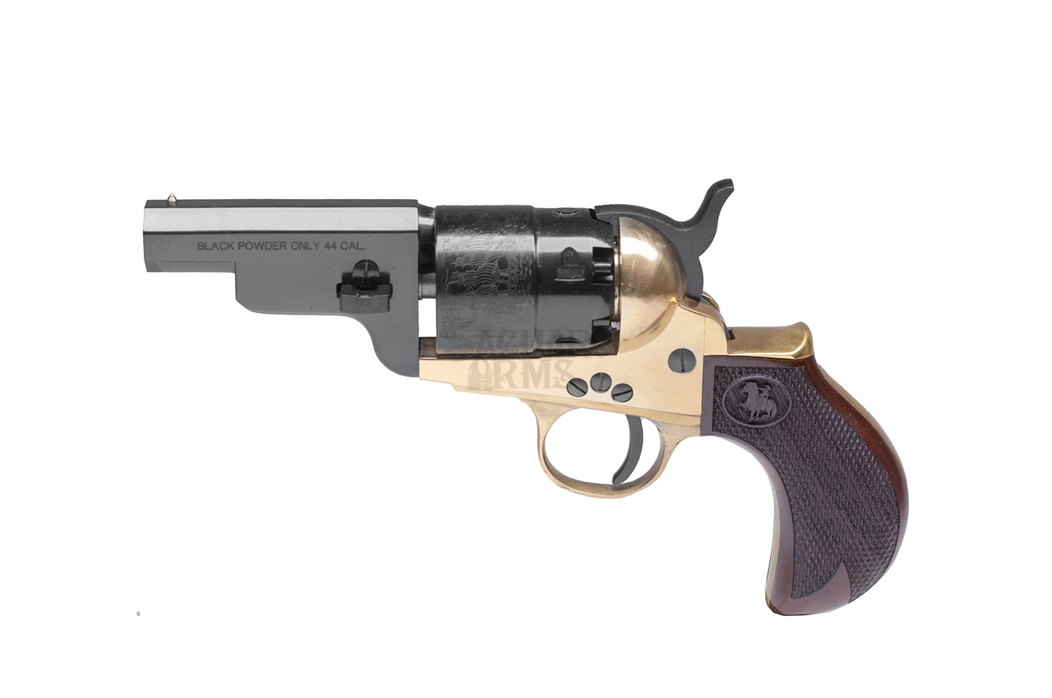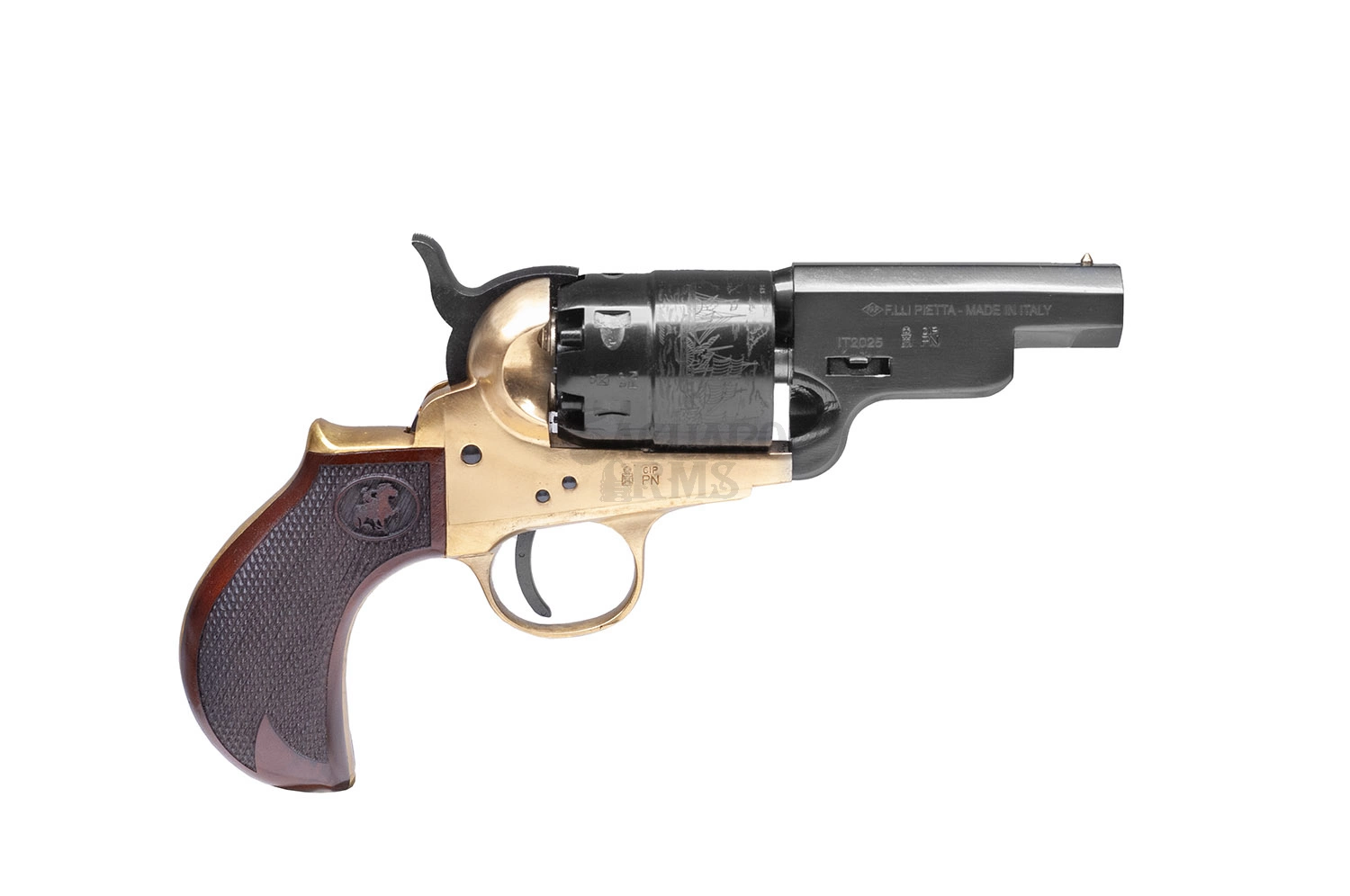 Sześciostrzałowy rewolwer z ramą mosiężną i rękojeścią typu birdshead . Rękojeść z drewna orzechowego - moletowana. Przyrządy celownicze - muszka stała , szczerbinka w kurku. Bębenek kanelowany.