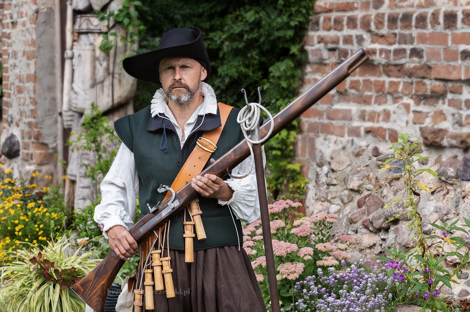 Gładkolufowy muszkiet lontowy w stylu walońskim ,kaliber 20ga z drugiej połowy XVI w.