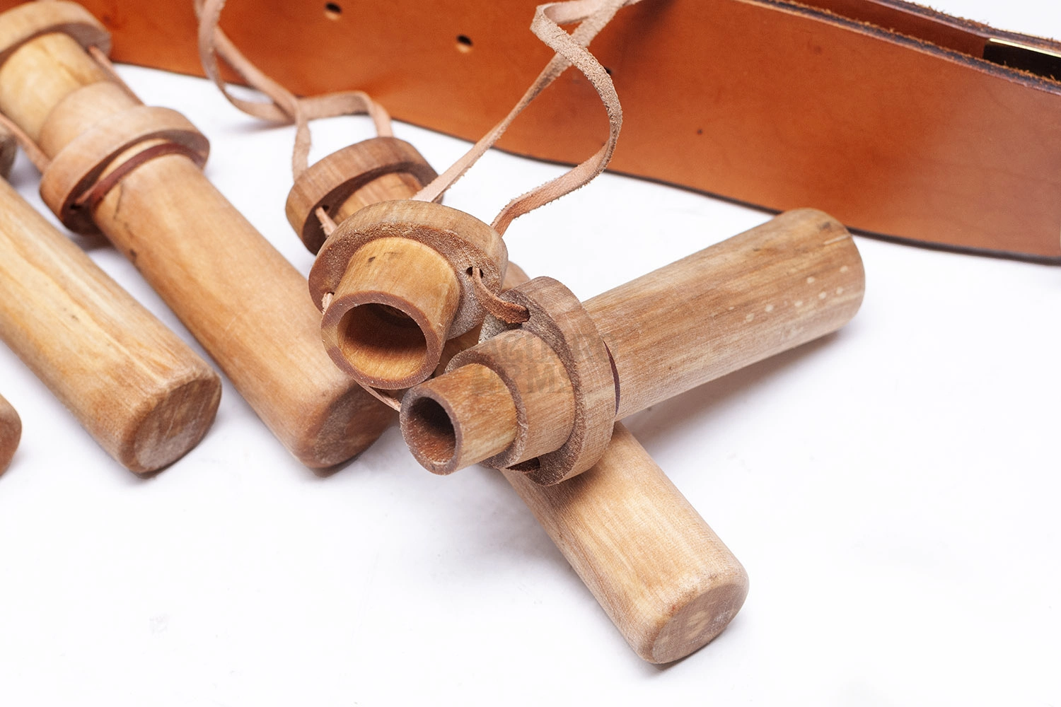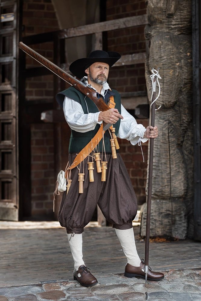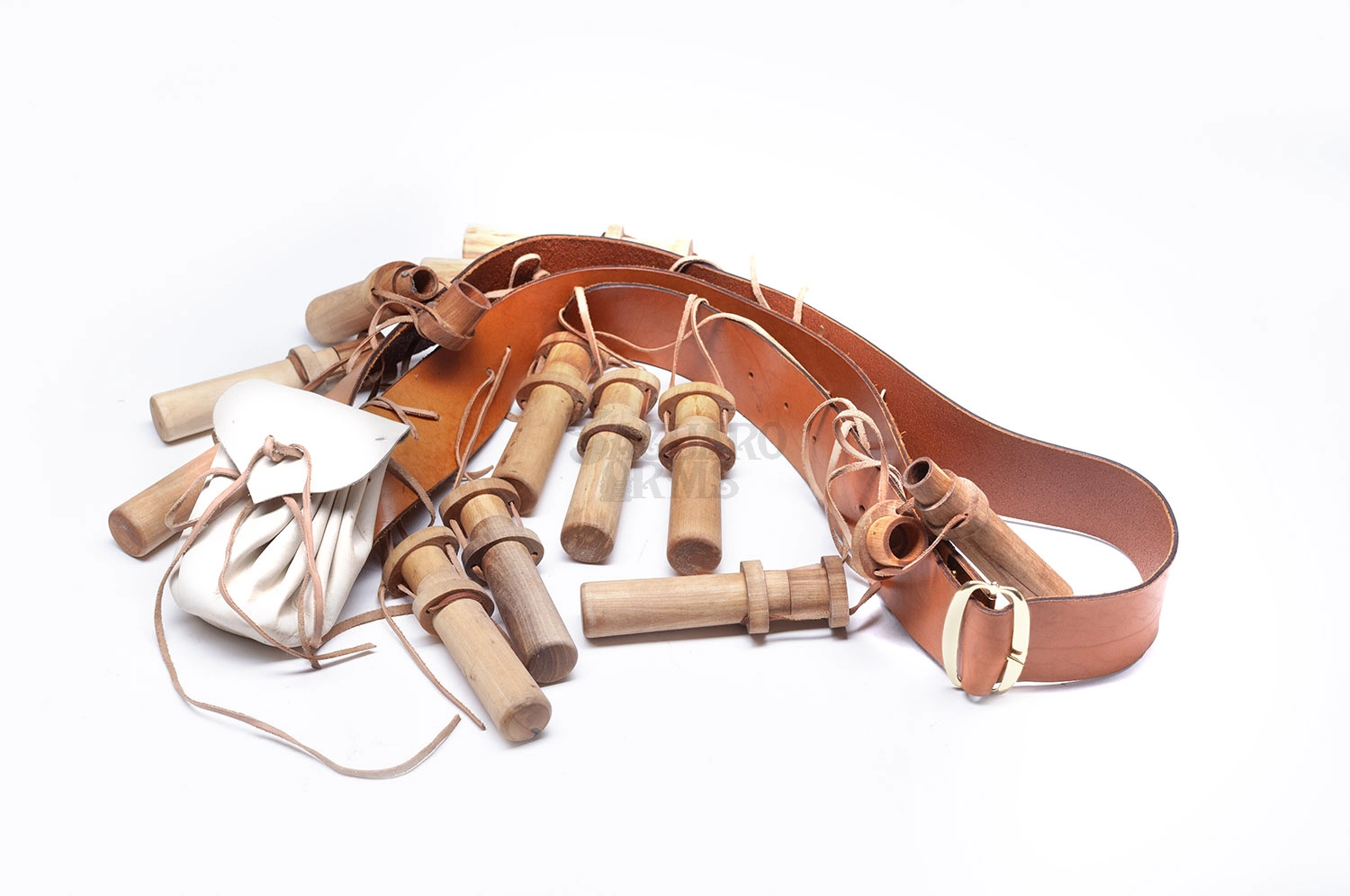 Skórzany pas- bandolier z 12 drewnianymi apostołami (zasobnikami na proch). Używany w XVI I XVII wieku przez żołnierzy strzelających z muszkietów lontowych. Pas posiada mosiężną klamrę i skórzaną sakiewkę na kule.